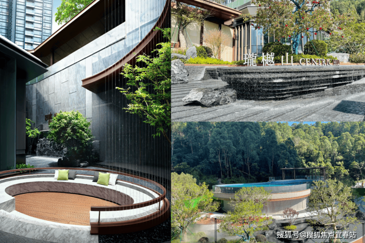 小区是往现代高端社区方向打造,步行大门是山林水石设计,而车行出入口则设计了酒店级回旋处落客区,跟「胤璞」很像。