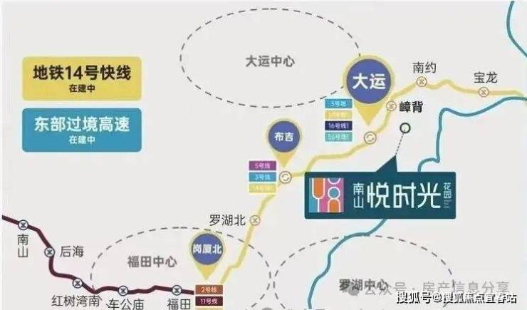 14号快线:东部首条快线,时速达120公里,预计2022年9月底通车。南山悦时光毗邻嶂背站,1站大运,8站福田,30分钟直抵福田中心。