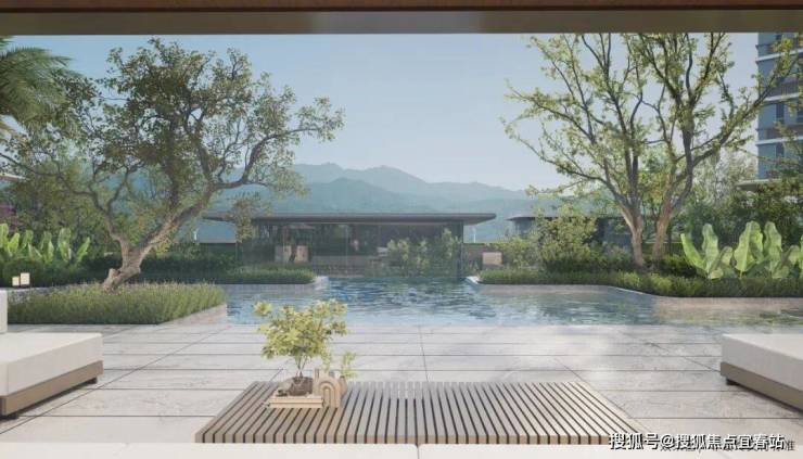东方森系立体水院,打造东方美学+网红体验的沉浸式森居生活;约95㎡网红悬挑户外戏水池,瞰立体森系水院景观