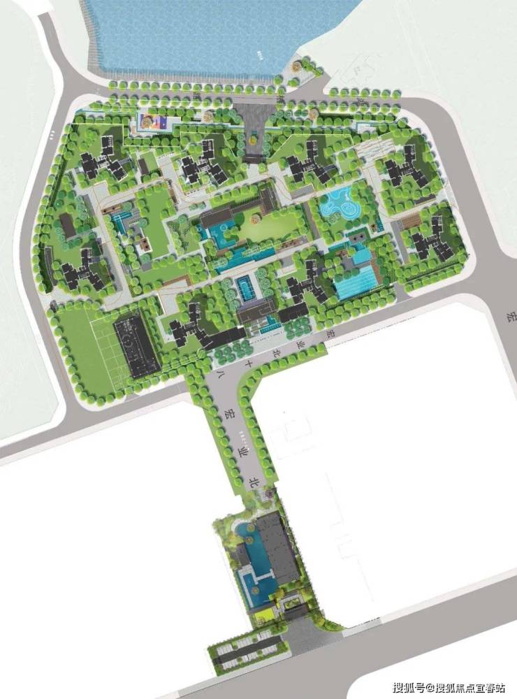 项目配套:架空层泛会所、公立幼儿园、分龄段无边界泳池、滨水公园