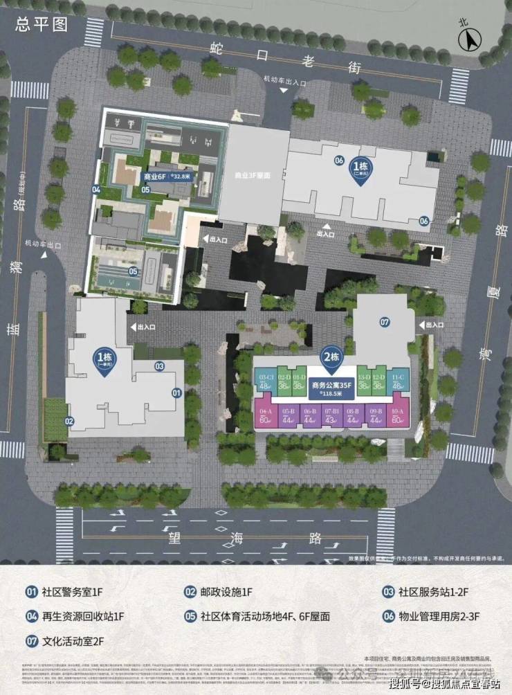可以看出项目由2栋45层的住宅和1栋39层的公寓,以及一些商业和公共配套组成。