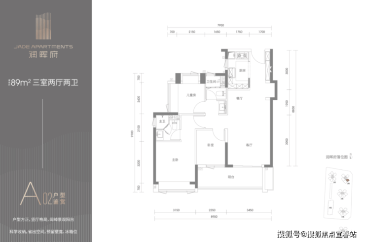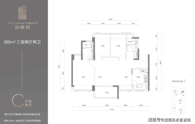 B/C户型为89㎡横厅三房二卫,算是年轻人比较喜欢的户型。朝向分为东南、东北和西北朝向,两者区别在于入户方式及内部格局分布不同。其中从户型入户处嵌入式玄关对比B户型,更兼具实用性、美观性、私密性。