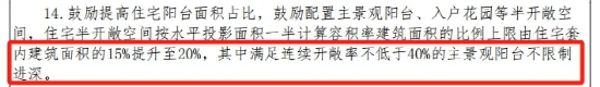 住宅半开敞空间按水平投影面积一半计算,容积率建筑面积的比例上限由住宅套内建筑面积的15%提升至20%。