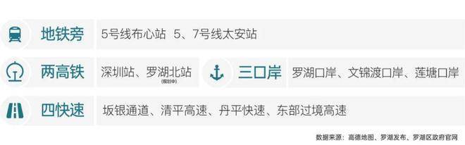 项目距离地铁5号线布心站约250m、距离地铁5、7号线太安站约500米。周边近享2高铁、3口岸、4快速,通达全城,三大口岸年通关量5876万人次,地铁旁物业坐享深港两地海量商机人流。
