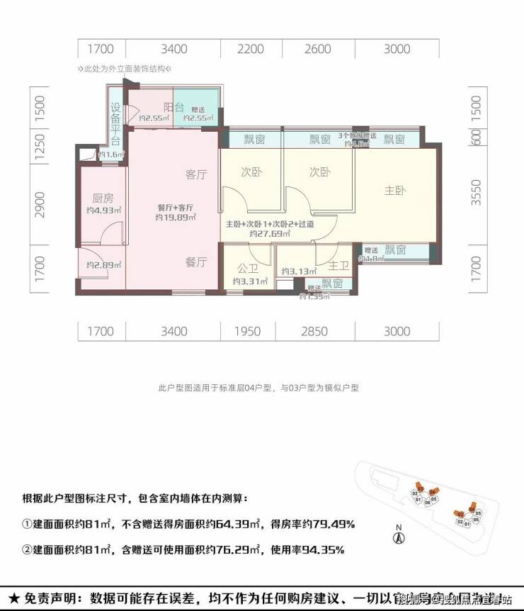 户型面积布局03/0481平三房两厅两卫红山稀缺南北通透三房两厅两卫户型,格局方正,一步到位满足全家人居住。户型亮点精聚焦青年家庭需求,联发精研定制建面约81㎡超能三房两卫成长空间,综合使用率高。