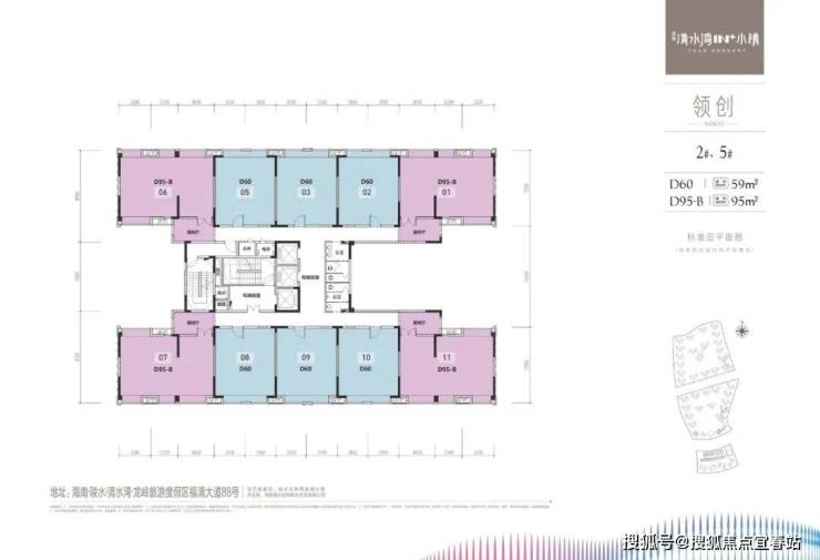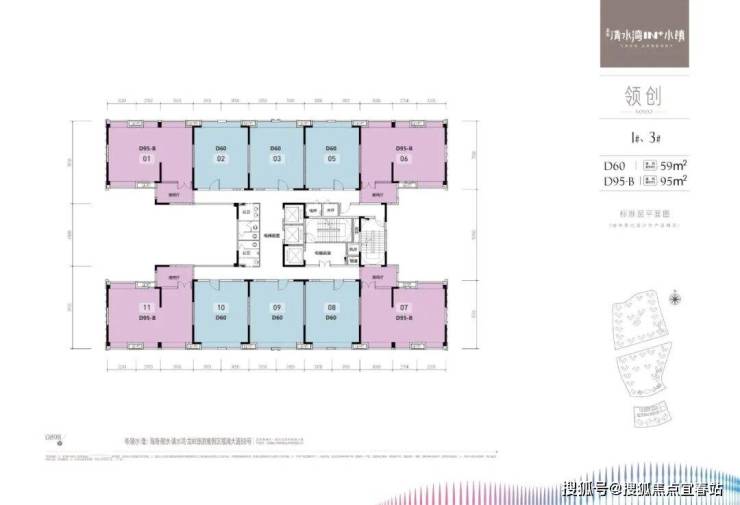 1、领创1栋2栋3栋5栋:面积59和95平米