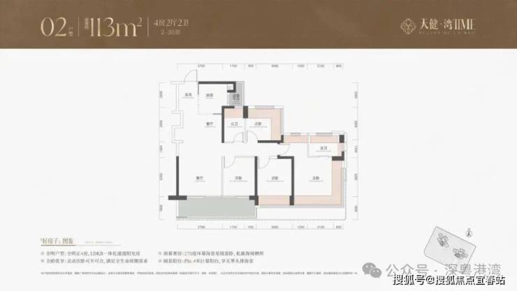 113平4房主力户型,大部分房源的采光和景观视野较好。