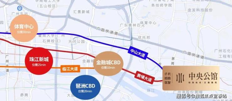 自驾约15分钟通达金融城核心,约30分钟通达到琶洲CBD和珠江新城CBD,多条主干道交织成网,自驾出行同样方便快捷。