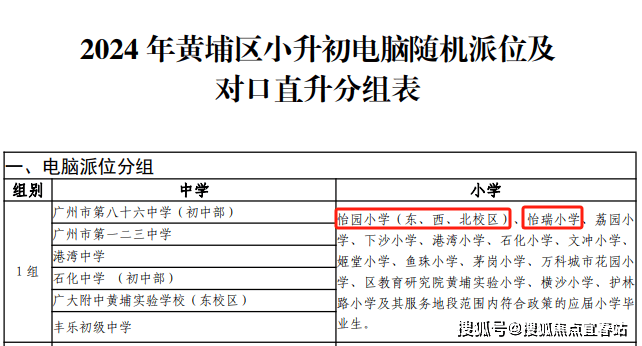 怡园小学及怡瑞小学,派位分组里面有黄埔广附东校区、86中、123中、石化中学、港湾中学、丰乐初级中学。