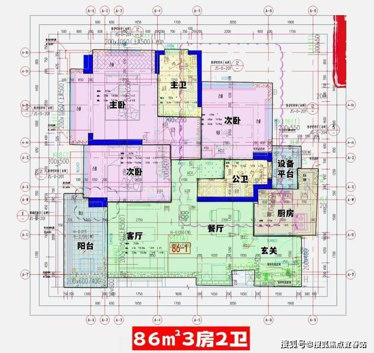 设计的是经典竖厅格局,客厅3.3开间,LDKB一体化,S墙设计预留冰箱卡槽位,动静分区,三开间朝南,3个卧室分别做到了主卧13.92m/次卧8.92m/次卧7.43m(去掉墙体,包含飘窗),U型厨房,卫生问三段式分离,还带1个设备平台,得房率约88.34%(包含赠送),西南朝向。