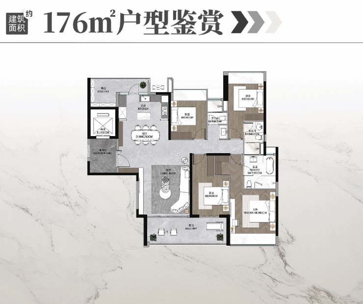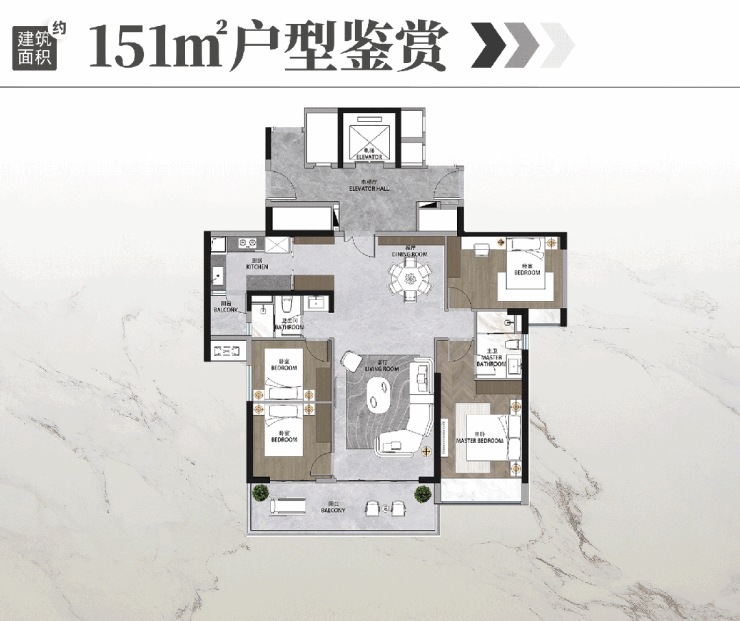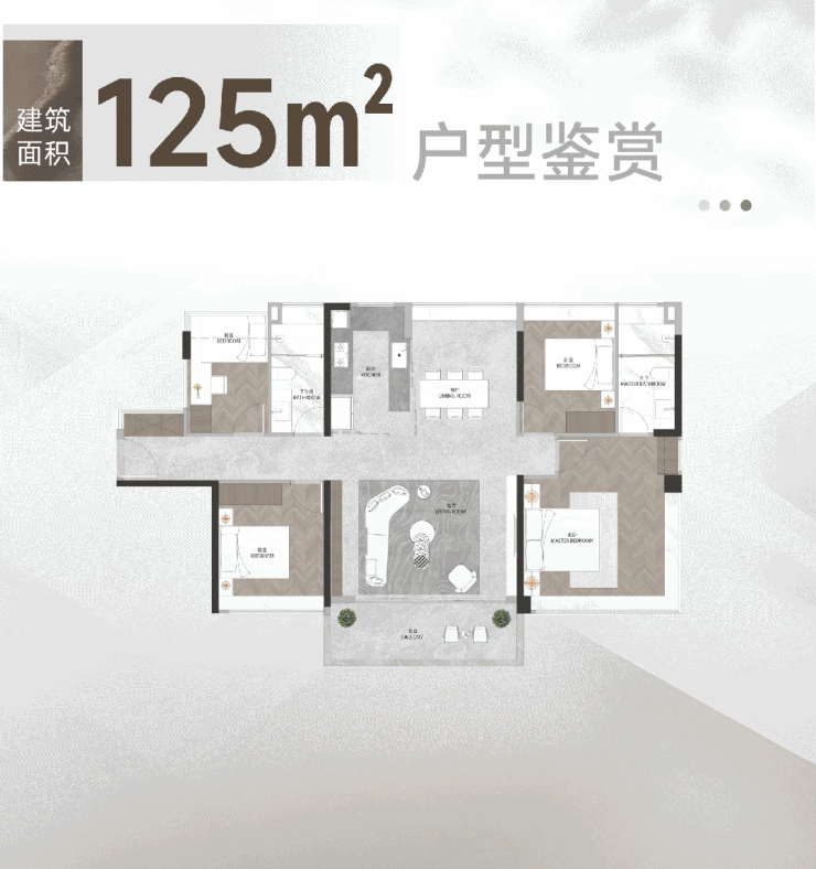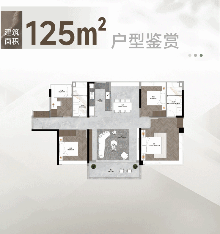 121㎡ 3+1房2厅2卫,+1房百变空间,L型入户尊崇体验,约8.1m长南北通透都荟宽厅,约5m长270°观景阳台,约46㎡豪宅式社交空间。