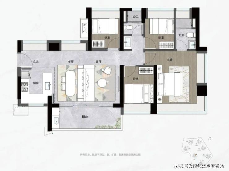 最后介绍一下卓越珺奕府全周期的户型空间。最大约150米超宽楼间和公建立面提供的遮阳、隔热、降噪,绝不意味着室内生活空间的草率处理。