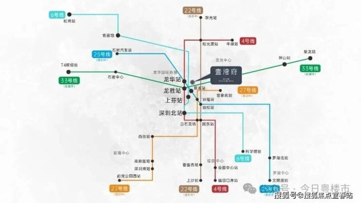 壹湾府与地铁4号线“龙华站”直线距离仅约600-800米,步行约10分钟即可抵达,快速串联深圳北站、福田CBD、南山科技园等核心区域。从龙华站出发,4站直达深圳北站(高铁枢纽),5站速达南山,8站直抵西丽枢纽,高效通勤覆盖全城。此外,项目周边规划多条地铁线路——22号线(油松站规划在建)、25号线(景龙站规划在建)、27号线(油福站规划在建),未来将形成“四线环绕”的轨交网络,进一步提升区域辐射力。