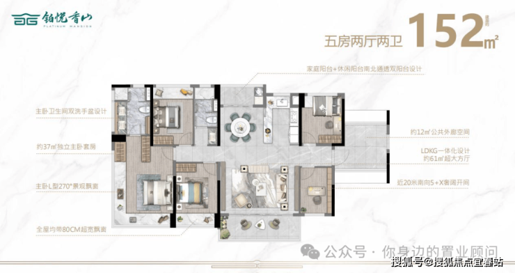 建面约152㎡5房户型,更是拉满了居住尺度。