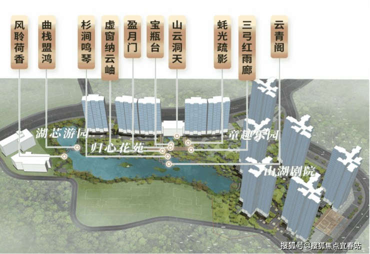 项目汲取余荫山房造园理念,采用“缩龙成寸”的设计理念,以水居中,环水建园,打造了「辰园十景」。