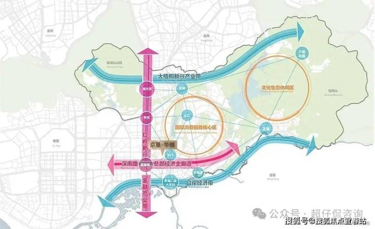 双枢纽:罗湖口岸跨境枢纽、罗湖北站(建设中)高铁枢纽