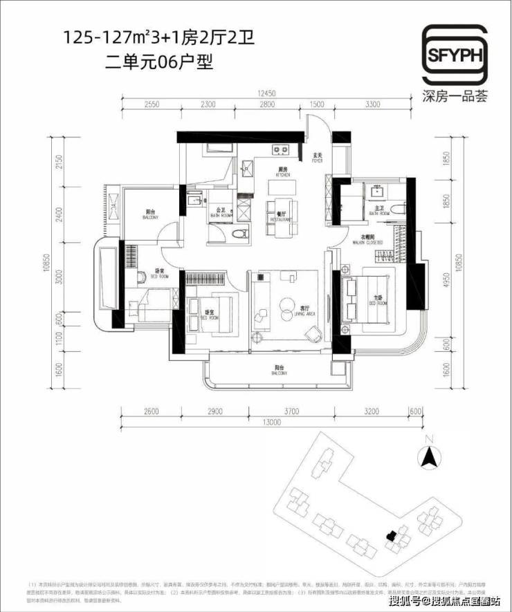 约125-127㎡3+1房2厅2卫,双龙抱珠户型,厨房做了开放式设计,主卧L型转角阳台明亮大气,小阳台套内有5㎡完全可以做个房间使用。深圳金地环湾城开发商售楼处电话:400-166-9557售楼中心。