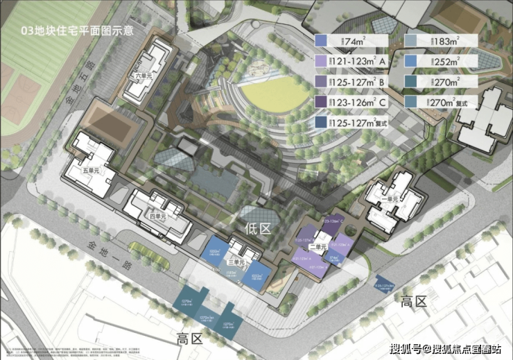 金地环湾城位于深圳市福田区沙嘴路, 项目在售125-289㎡住宅3房-5房,包括写字楼、公寓、住宅、酒店、购物中心及一所九年制公办学校、一所幼儿园。项目由四个地块组成,总建面近100万平。
