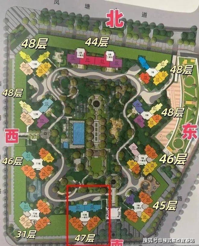 【总层高】31-48层,其中6栋1/2单元住宅44F,7栋/8栋住宅48F,9栋1单元住宅46F,9栋2单元住宅45F,10栋1单元住宅47F,10栋2单元住宅31F,11栋住宅46F,12栋/13栋住宅48F。