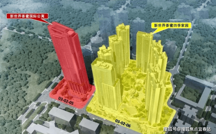 总占地面积约4.64万㎡,规划总建筑面积约48万㎡,分为两个地块开发,03-02-05地块规划为公寓产品的新世界香蜜国际公寓,03-02-06地块则是新世界香蜜四季家园。