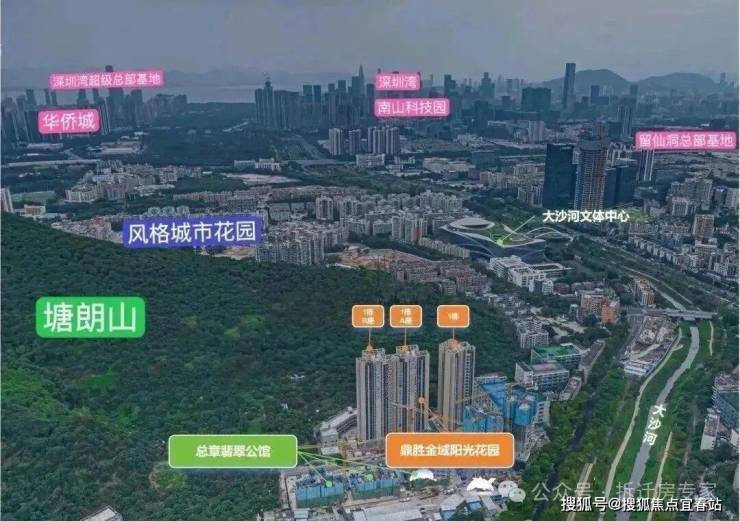 在建中的大沙河文体中心,距离项目也就600多米。西侧规划的西丽文体中心和南山文理实验学校,都是低层建筑,视野不会有太多遮挡。