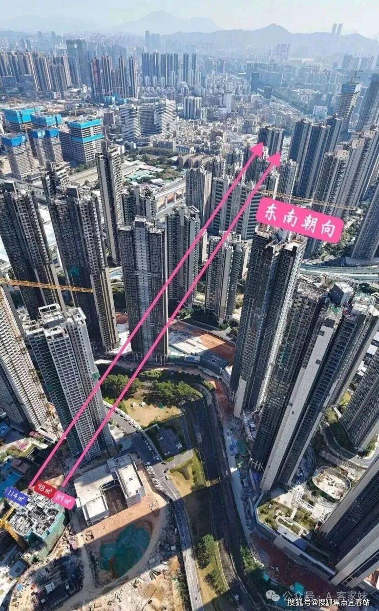 △以上是3栋其中一个02的89以及01的98,07的114三个户型三个户型主阳台东南朝向,可能会被2栋以及前面的深铁珑境遮挡一些视野,好在98户型做的好做到了四房两卫,114呢又是南北通透北面飘窗也能看到阳台山景观,89㎡相比西南朝向要好一些但是视野要牺牲一些