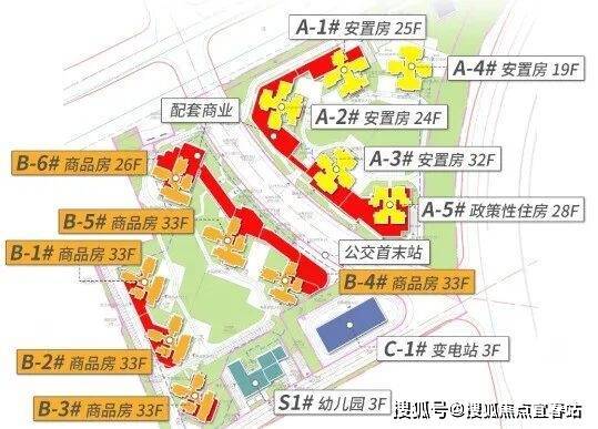 小区配套:整个项目,以中间规划路为界,左侧是6栋商品房,右侧是5栋安置房(含1栋公租房),配建有1所9班幼儿园、托儿所和公交首末站,1.8万㎡围合式大园林及1.5万㎡红线内外绿化。