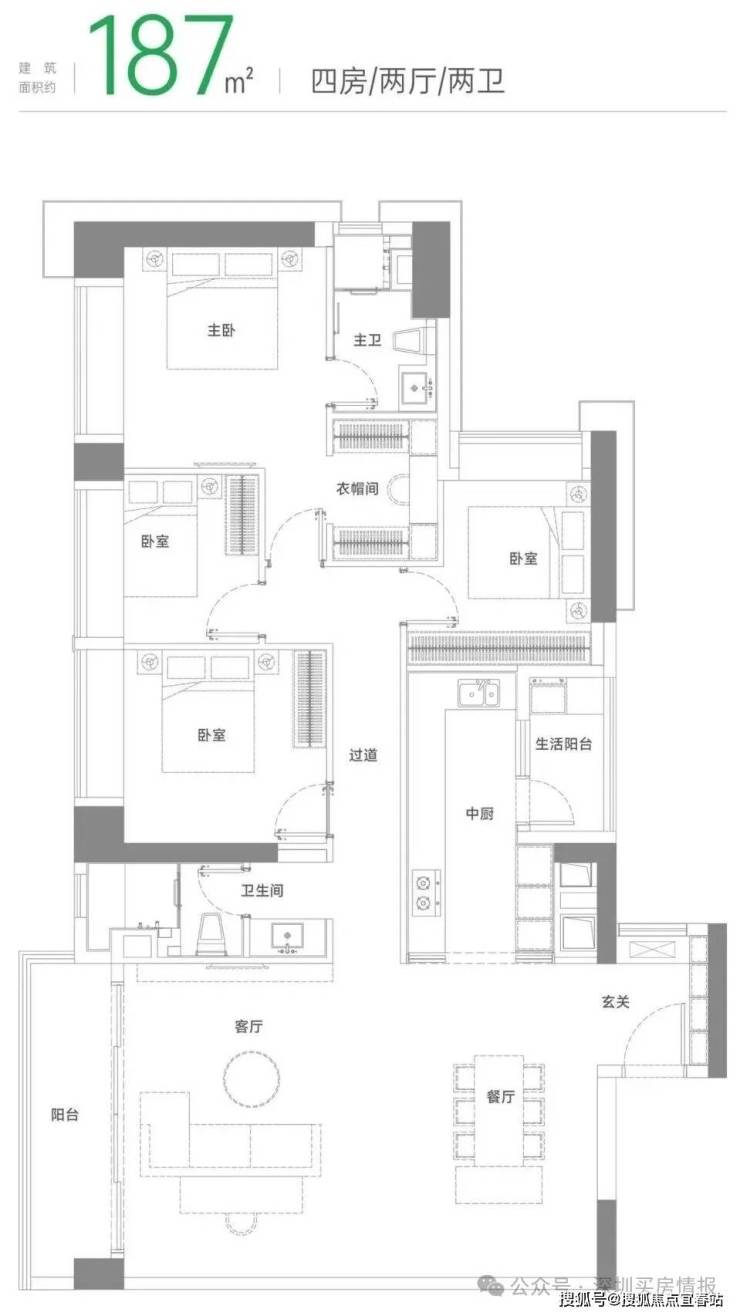 I动静分区舒适化营造,休慎与家庭活动互不干扰双阳台设计,厨房连通生活阳台,延展更多空间,随心收纳