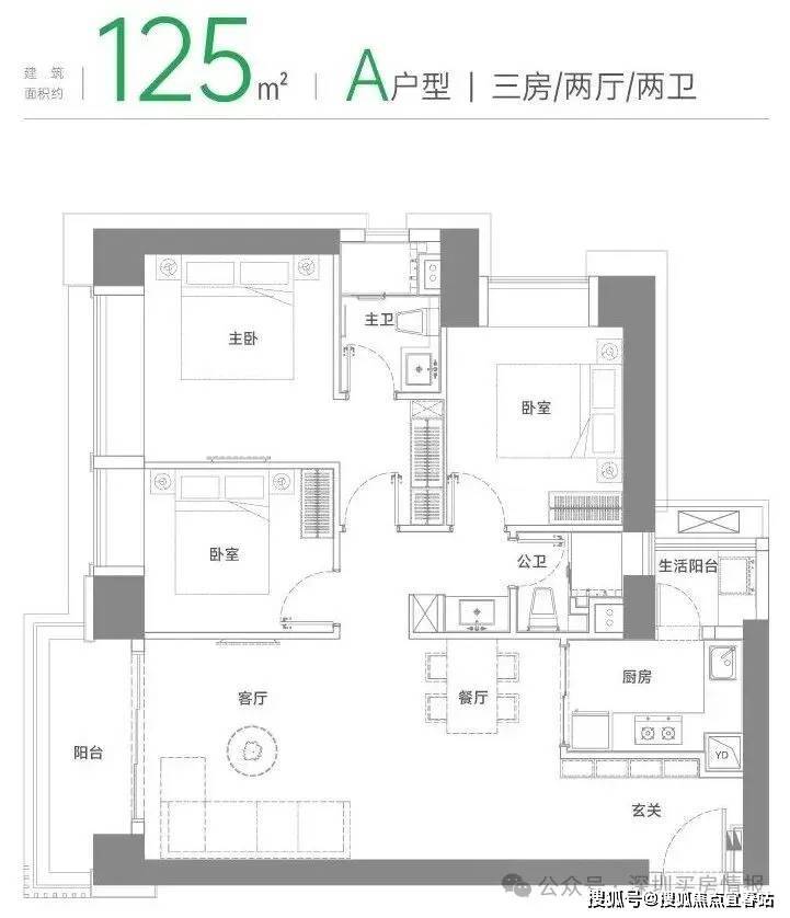 ③ 125㎡3房2卫:809套(A户型646套+B户型99套+C户型64套)