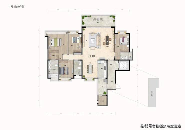 约143㎡四房两厅三卫:豪华双套房,阔绰四房