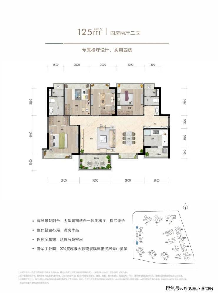 约125㎡四房两厅两卫:专属横厅设计,实用四房