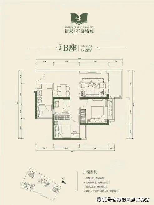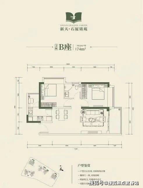 2栋B座二单元04、05户型:面积约为72-74㎡的2房2厅1卫。