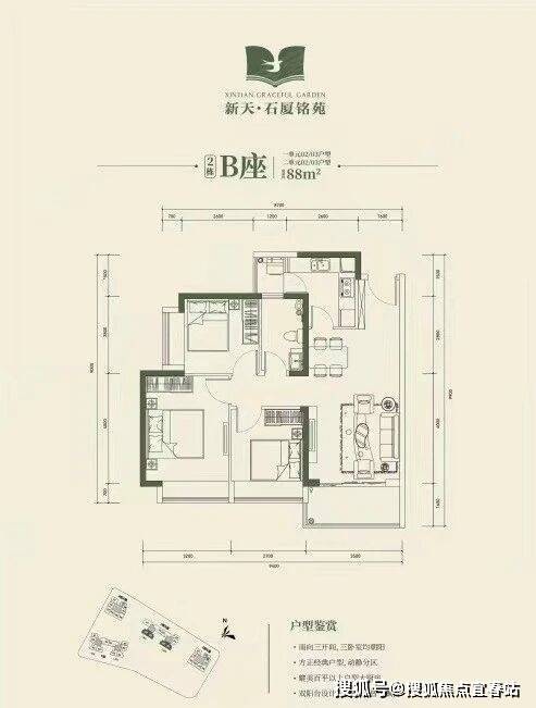 🔸2栋B座一单元02、03户型、2栋B座二单元02、03户型:面积约为88㎡的3房2厅2卫;