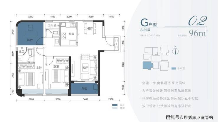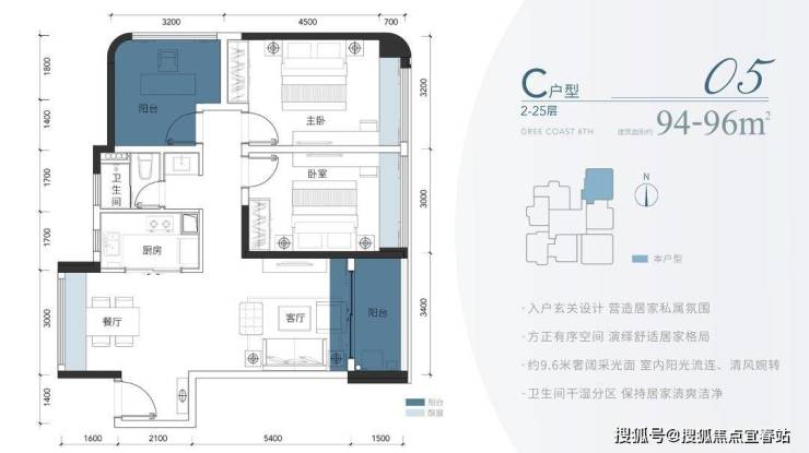 在建面约94㎡-96㎡的空间中,C户型规划出3室2厅的张弛有度的格局,满足三代同堂的自在生活。