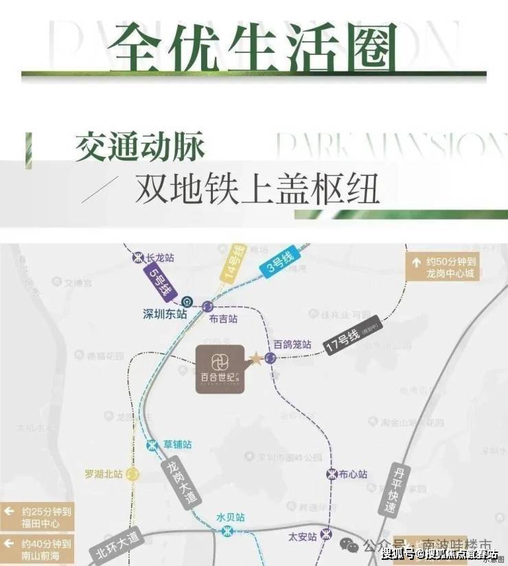 项目作为双线地铁上盖物业,5号线百鸽笼站与社区无缝接驳,在建中的17号线也将在此站接驳。1站可达布吉(深圳东站)换乘3/14号线,1站抵罗湖,4站至福田,7站达深圳北;1公里接驳龙岗大道,2.5公里直达丹平快速,水官高速、北环大道构建立体通勤网络。
