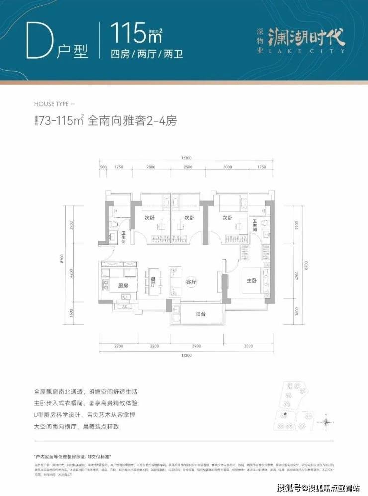 产品面积段:建面约73-115㎡全南宽奢2-4房