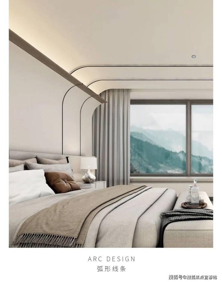 从外立面到室内空间,极致的弧形设计也得以延续:室内很多细节都有弧形元素,比如弧形玄关、圆角岛台、卧室弧形线条设计等,虽然这样的设计成本更高、耗材更多,但这样做不单增加了空间流动感,还体现了对生活细节的精心打磨,为业主营造了优雅从容的生活场域。