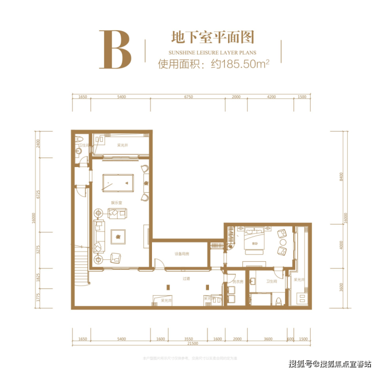 地下室:使用面积约 185.50㎡