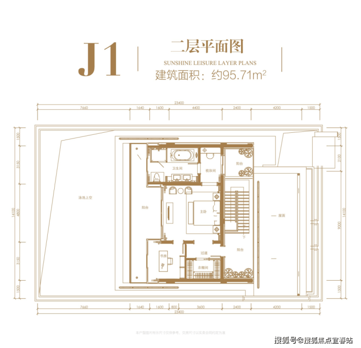 二层:使用面积约 95.71㎡,