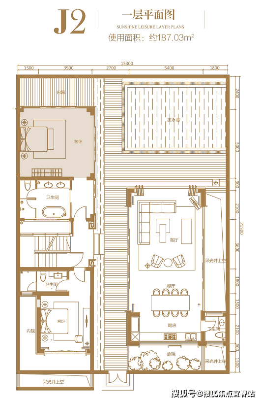 一层:使用面积约 187.03㎡,