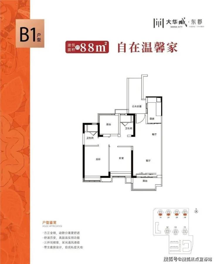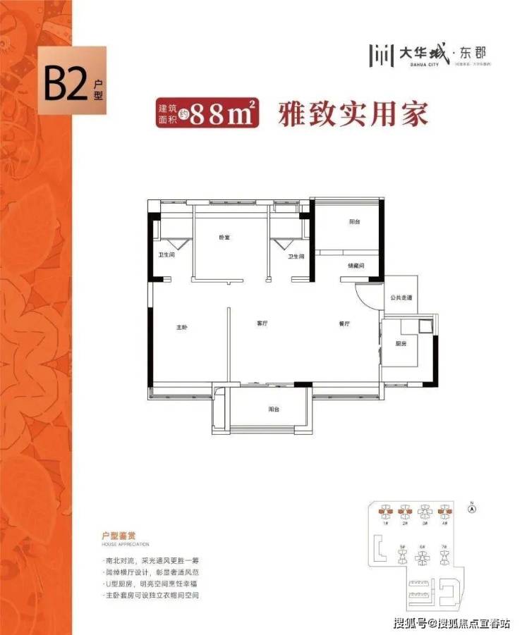 3.B2户型 88㎡2+1房| 两厅一厨两卫