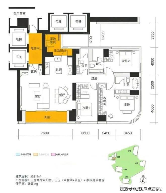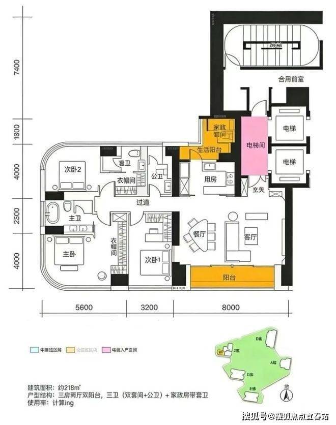 1. 211-218㎡三房三卫(入门级改善户型)