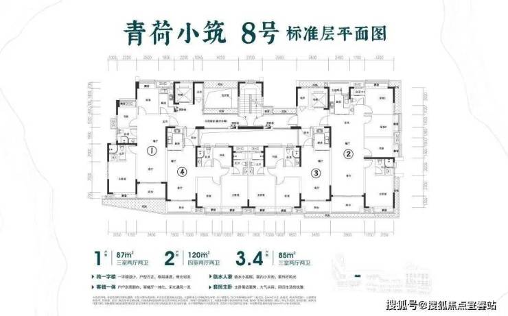 其中,约85㎡户型为3房设计,约120㎡户型为4房设计,三代同堂其乐融融。