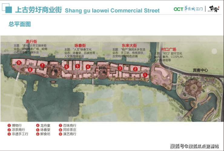 ——古圩盛景片区:古色古香的岭南特色水岸风情商业街,首期商业上古劳区,总长约500米,商业约10000㎡, 7000㎡二楼水岸客栈,吃喝玩乐一站式即享;
