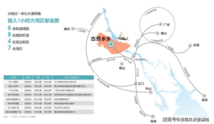 依托优越的地理位置优势,项目享水陆空一体化交通网络,融入1小时大湾区都会圈: