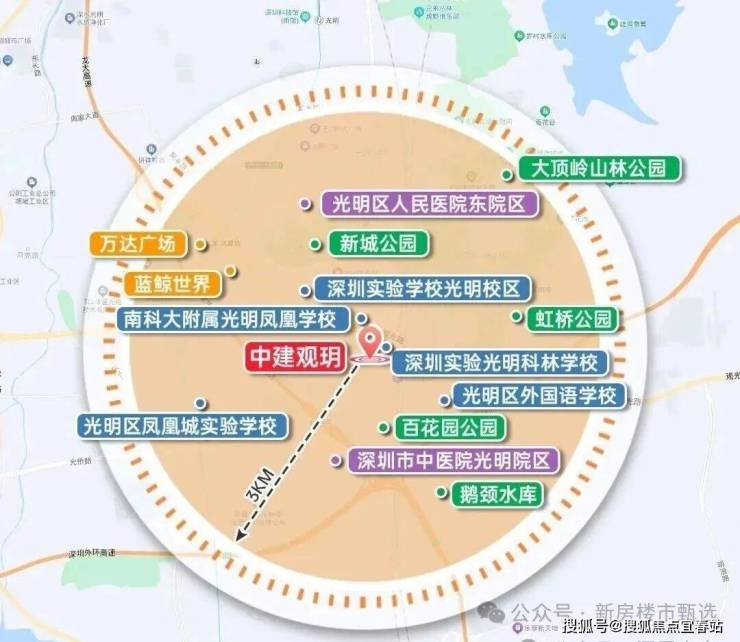 观玥名邸,位于光明区凤凰街道光侨路与观光路交汇处东南侧,地处凤凰城板块,根据光明十四五规划,凤凰城板块定位为光明科技总部基地,科创融合先锋商务区,提升光明城站枢纽地位,争取在2035年建成竞争力影响力卓越的世界一流科学城和高 质量高颜值的深圳北部中心。