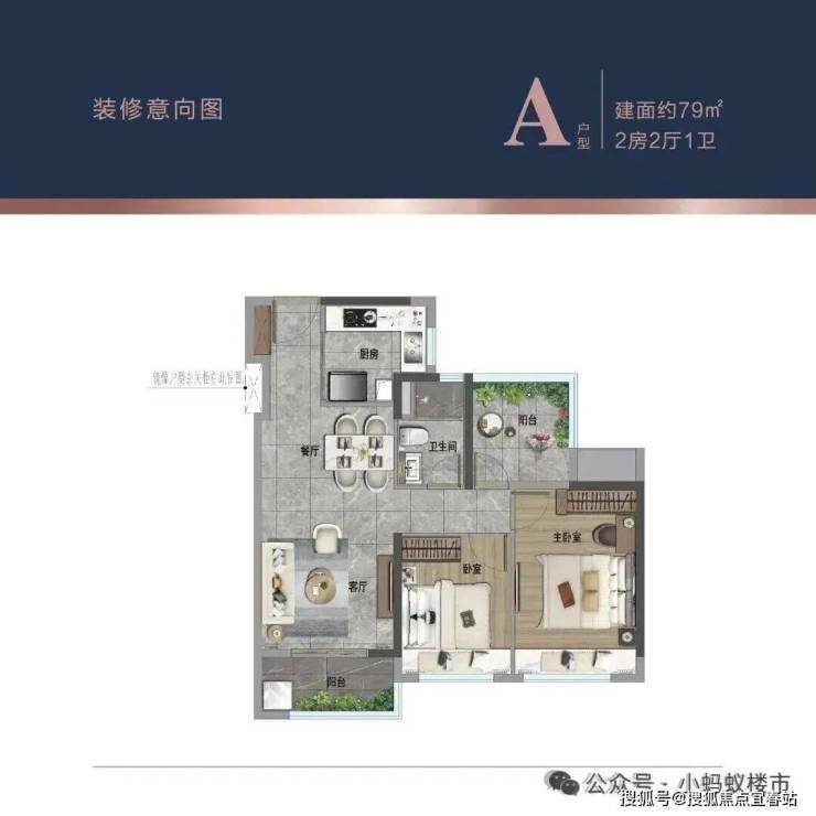 · 79㎡ 2+1房两厅一卫:三开间朝南,空间利用率高,适合刚需购房者