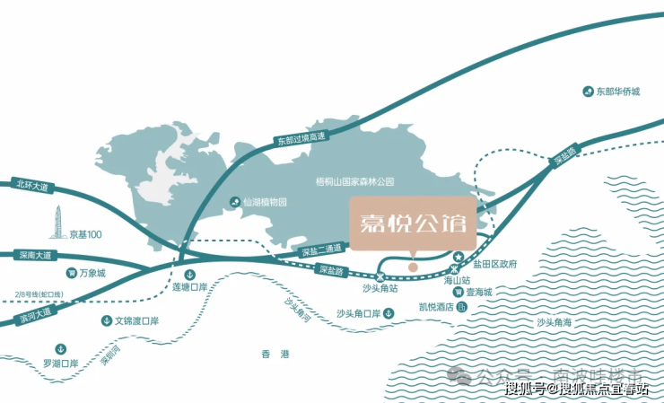 直线距离8号线沙头角站/海山站地铁口均约700m,1站罗湖,8站福田CBD。拥享沙头角&莲塘双口岸,快速抵达香港,轻松实现双城生活。