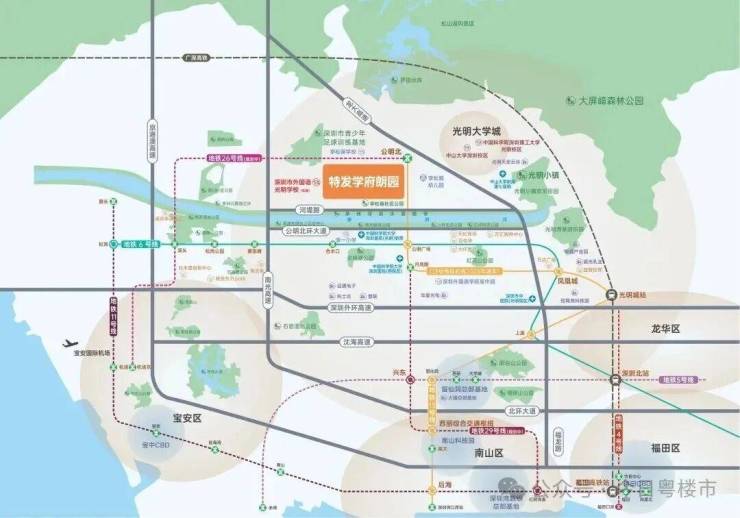项目直线距离13号线高新技术人才专线首站公明北站(在建)约200米,未来搭乘该线可直达南山科技园、后海;南光、龙大双高速环绕,自驾速抵南山、福田、龙华核心。