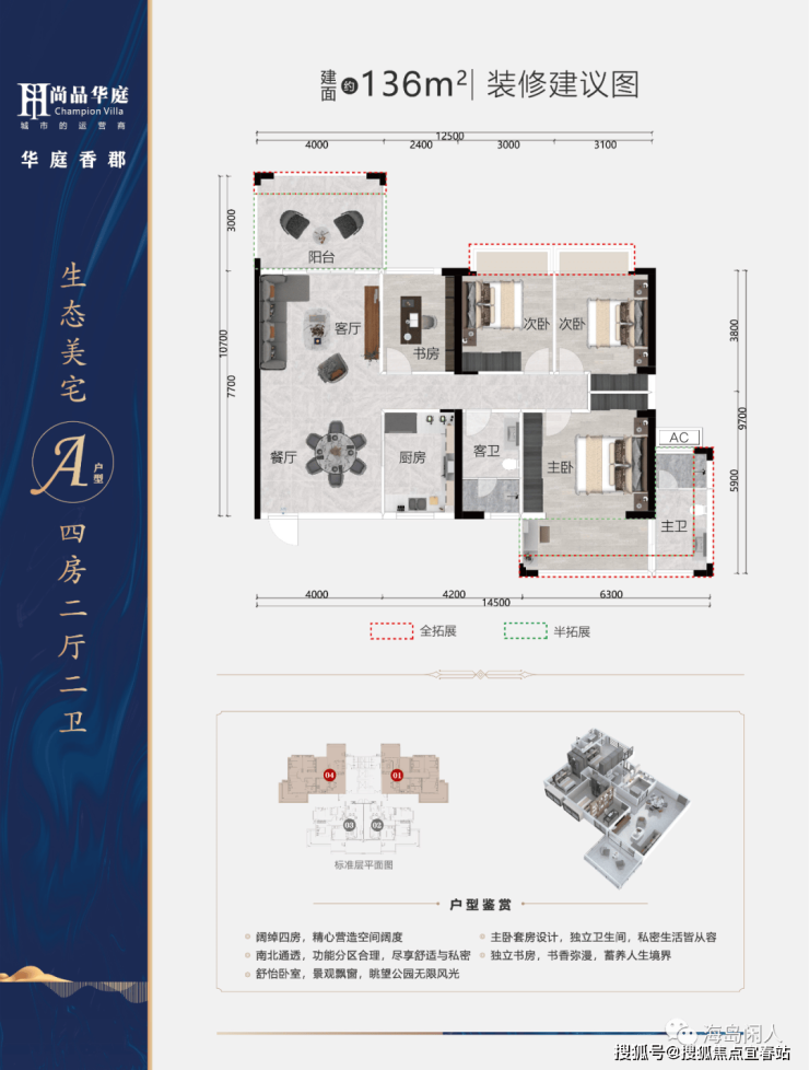 梯户比:两梯四户,超大落地观景阳台